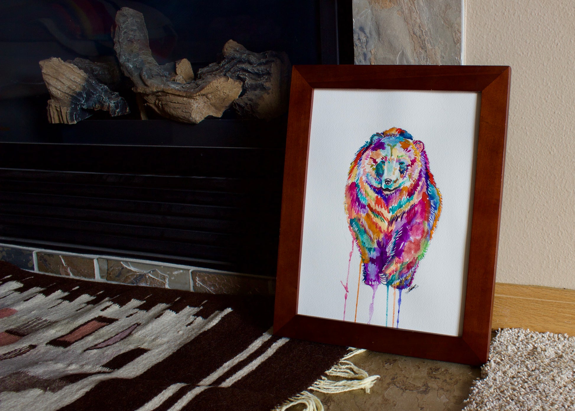 Winter Is Coming is a vibrant, nature-inspired piece full of warm tones, soft watercolor layers, and a touch of humor that brings the wild to your walls.
